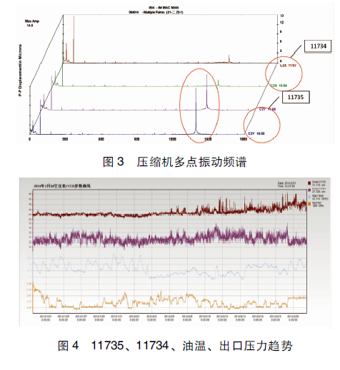 (4)从频谱分析来看,压缩机能够继续运行,但需要密切关注轴承振动;